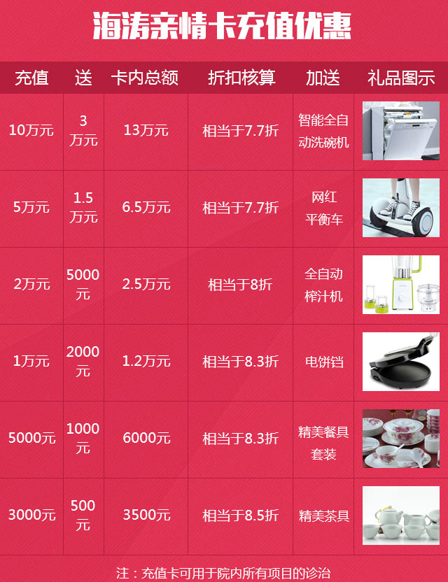 另悉,部分患者咨询反映:此次活动一年仅此一次而且优惠力度特别大,若9月15日当天,因有其他事情没法来现场参加活动,希望医院能给预留优惠名额。院方研究后决定:即日起至9月14日,每日优先推出10个优惠名额参与充值活动。同时,提前预约参与活动的患者,若当天不能到场参加活动,需在9月14日前告知,可酌情保留优惠名额,但抽奖活动仅限当日到场患者参与。详情可咨询海涛口腔全国直营(电视塔总院)。