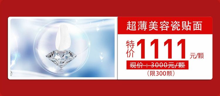 海涛双11,美牙狂欢节。海涛“一天得”美容牙原价8000元/颗,现价6000元/颗;经典超薄美容牙瓷贴面现价3000元/颗,现特价1111元/颗,且限时限额,活动期间仅推送300颗。想要变美的你,赶紧抓住机会,让自己在“十一”期间实现完美蜕变!